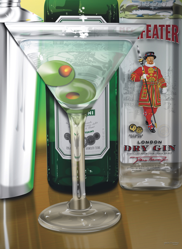 The classic martini, Beefeater gin, straight up with two olives. Very dry, of course.