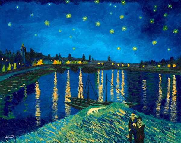 Painted for a friend who’s favorite Van Gogh is “A Starry Night Over The Rhone”, this was my first attempt at impressionism.