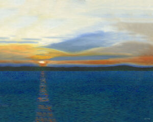 Please don’t laugh. This is another painting from memory. It is the first thing I remember drawing, probably with crayons, when I was five years old. Much to Jackie’s delight, I repainted it several years ago.